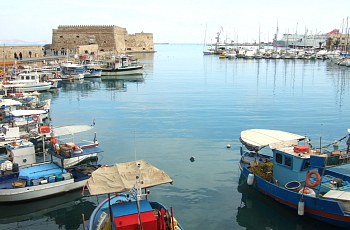 この町の見所となる建造物は、旧港に残るヴェネチアの砦と造船所跡の一帯に尽きるだろう。雑然とした大都市の市街を抜けると、一面の青い海がここがクレタ島であることを思い出させてくれる。