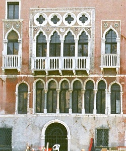 主要な建物は全て運河に面していて、運河側に正面玄関を持っているので、観光は水上からするのが正しい。時おり横切るヴァポレット(渡し舟)やゴンドラを眺めながら進んでいく。 ゲットー(ユダヤ人居住区)を過ぎて先へ進むに従い、重要な商館や邸宅が多くなりファザード(建物の正面)が豪華になっていくのが分かる。市場を過ぎるてすぐ潜るのがリアルト橋だ。