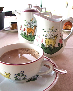 スイートなら海の見えるルームテラスでの食事も良いが、そうでもなければ昼食と同じ絶景のテラスでの食事がよい。 外来客がいない静かなテラスは、朝の涼しさも相まって、昼とは違った雰囲気だ。 ランチの時は肩身の狭そうだったのに今や自分の庭のように自由に歩いているホテルの飼い猫と遊んだり、手持ちぶさたなスタッフとのんびり会話したり、一番アットホームな食事タイムといえるかも知れない。